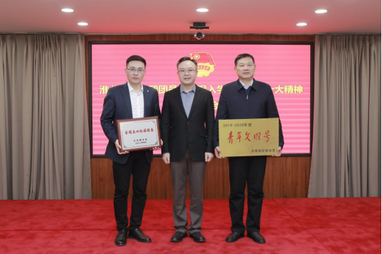 會上,還舉行了“全國五四紅旗團委”“安徽省青年文明號”授牌儀式,并為淮北礦業集團團校進行揭牌。