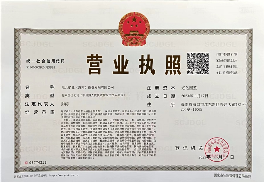 淮北礦業(yè)(海南)投資發(fā)展有限公司注冊成立