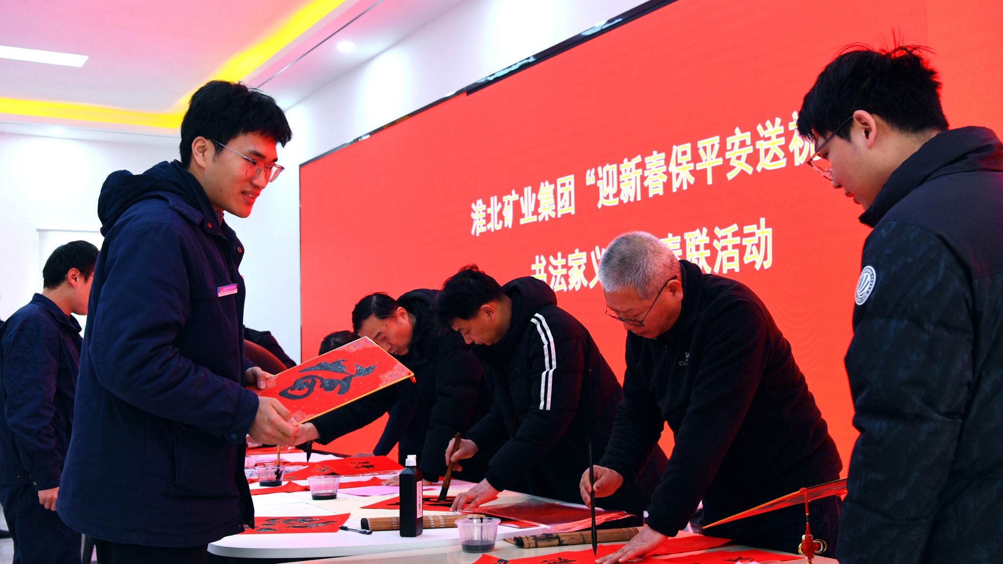 新春佳節(jié)將至,年味愈濃,暖意更盛。近日,淮北礦業(yè)集團(tuán)組織"迎新春 保平安 送祝福"書(shū)法家義務(wù)寫(xiě)春聯(lián)活動(dòng),特邀7位礦區(qū)書(shū)法家組成志愿服務(wù)隊(duì),深入蘆嶺礦、臨渙礦、青東礦等11家基層單位,為一線職工揮毫送福,讓濃濃墨香與真摯祝福溢滿(mǎn)百里礦區(qū)。